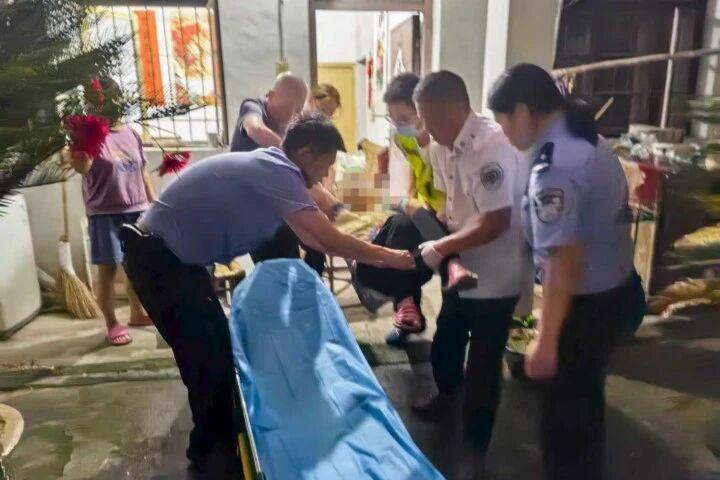 在邻居们的协助下,民警将张奶奶先抬到椅子上,再小心翼翼地抬出闷热的家中,安置在通风的走廊下。
