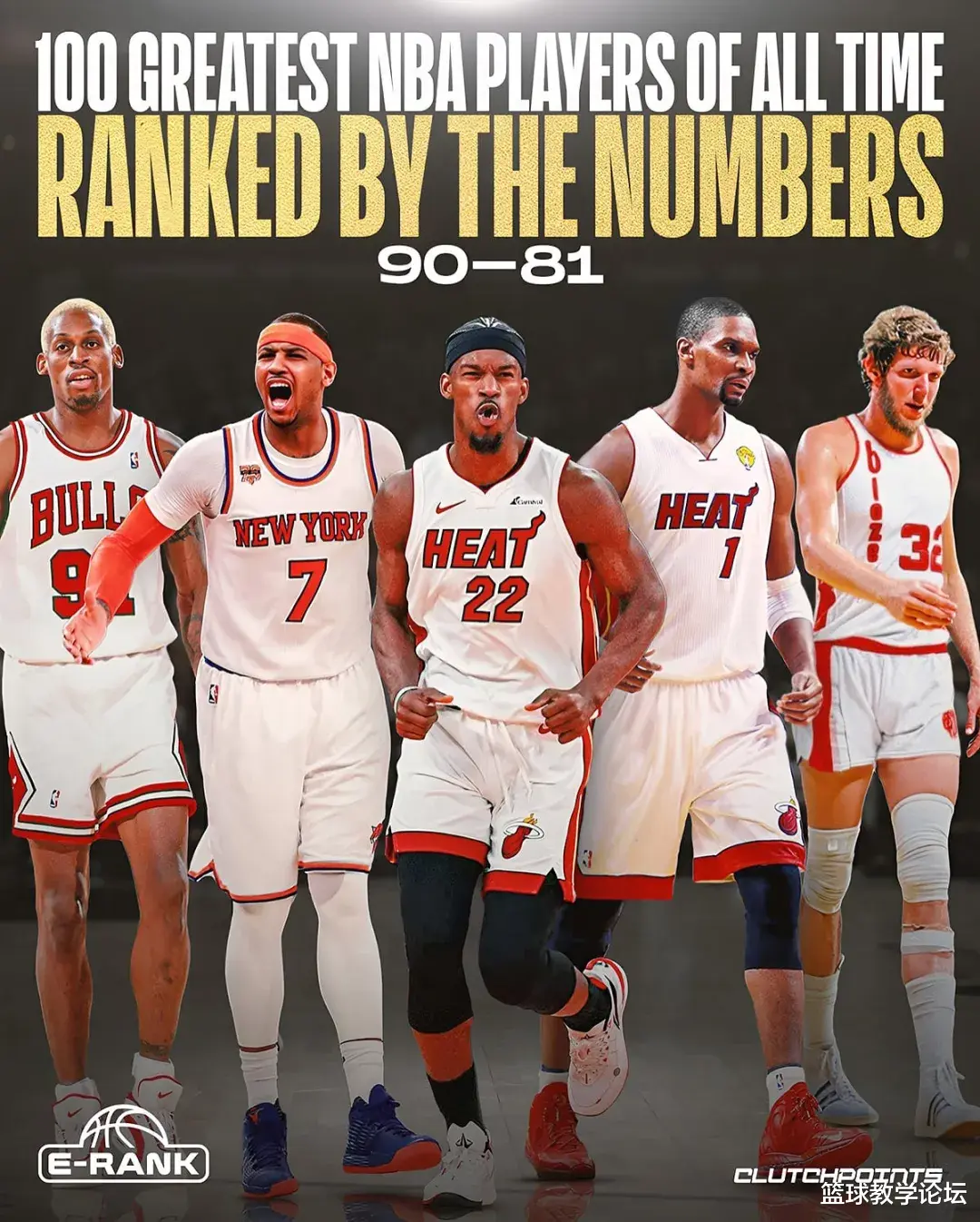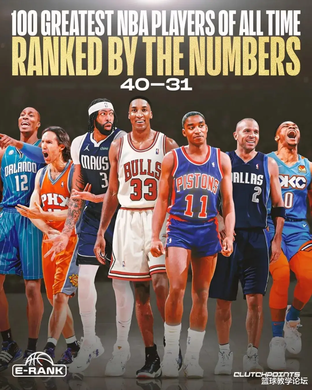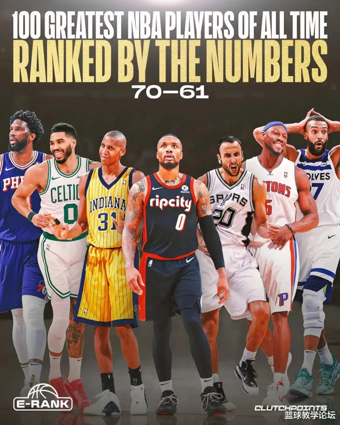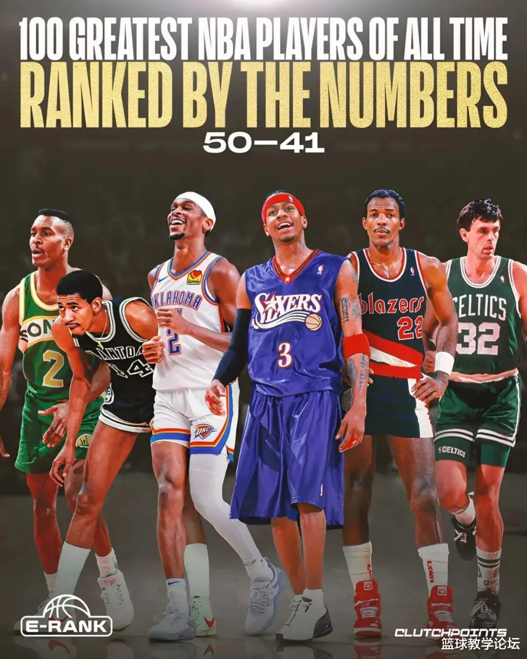 NBA媒体Clutch Points记者Josh Eberley盟配资,利用所创造的"E-Rank"计算公式,评选出NBA历史百大球星。E-Rank是一套通过量化指标评估NBA球员赛场成就的算法体系,涵盖生涯数据、巅峰表现、联盟奖项以及重要的制胜能力。